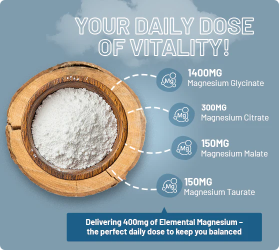 Our optimized formula is enriched with 4 highly bioavailable forms of magnesium to enable better absorption and ensure your body gets the full benefits of this nutrient